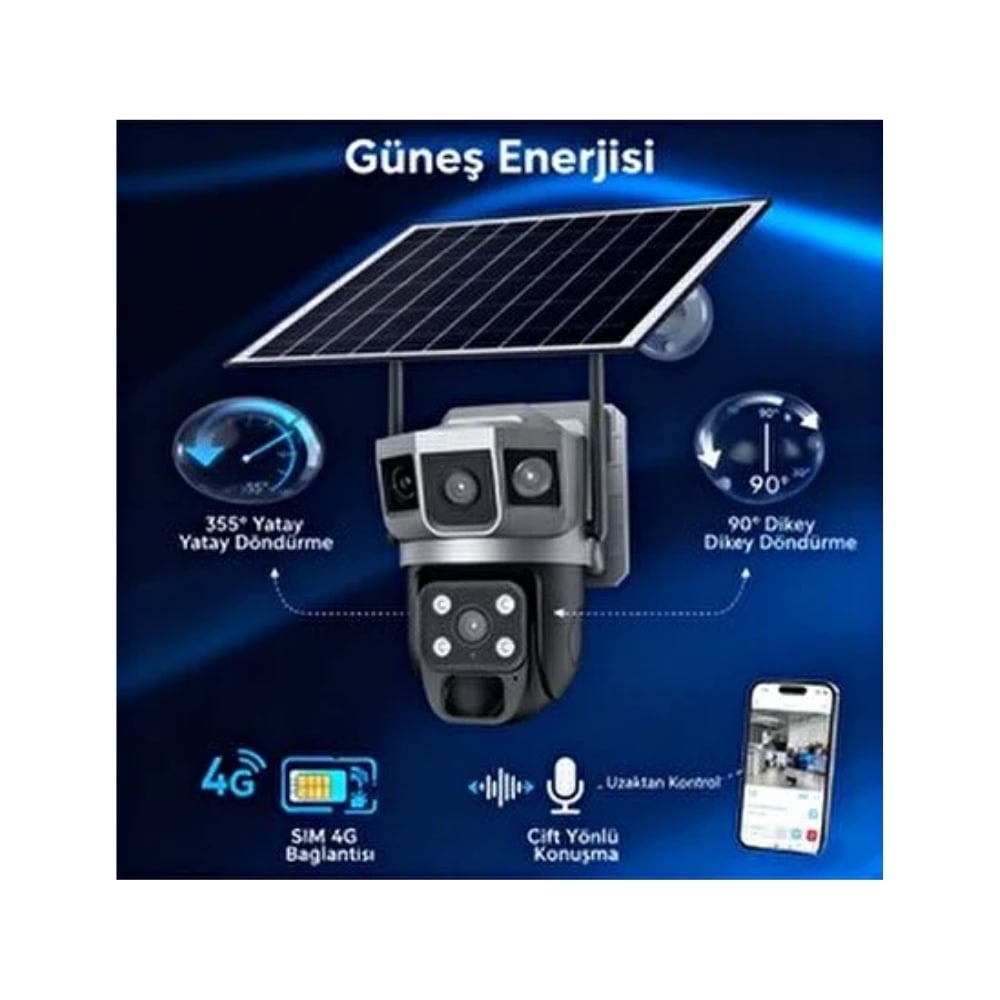 ⚡ %100 Kablosuz ve Enerji Bağımsız: Ürün, yanında gelen yüksek verimli güneş paneli ve dahili bataryaları sayesinde elektriğe ihtiyaç duymaz. Gündüz şarj olur, gece bataryadan çalışır.