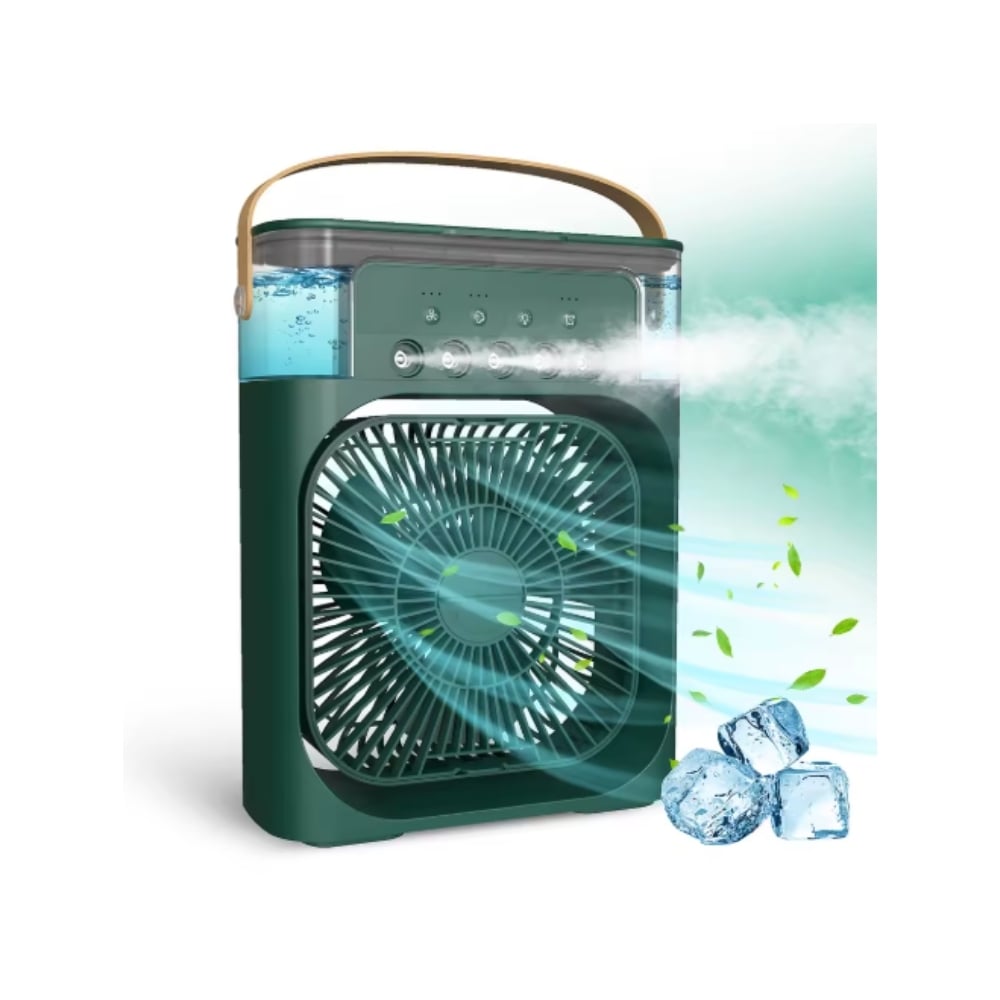 Mini USB Şarjlı Yeşil Hava Nemlendiricili Vantilatör & Gece Lambası, çok fonksiyonlu yapısıyla yaşam alanlarınıza ferahlık ve şıklık kazandırır. Sessiz soğuk buhar teknolojisi sayesinde bulunduğunuz ortamın havasını nemlendirerek kuru havanın neden olduğu rahatsızlıkları azaltır. Aynı zamanda vantilatör özelliği ile serinlik sağlar, LED gece lambasıyla da huzurlu bir atmosfer yaratır.
