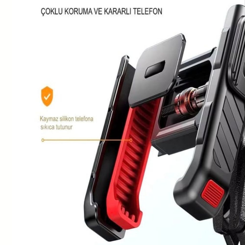 Dayanıklı ABS ve alüminyum alaşımdan üretilen yapısı uzun ömürlü kullanım sağlar. Yumuşak silikon destek pedleri, telefonu çizilmelere ve kaymalara karşı korur. Titreşim emici yapısı sayesinde bozuk yollarda bile telefon sabit kalır. Kolay montaj özelliğiyle hiçbir alete ihtiyaç duymadan gidona saniyeler içinde takılabilir.